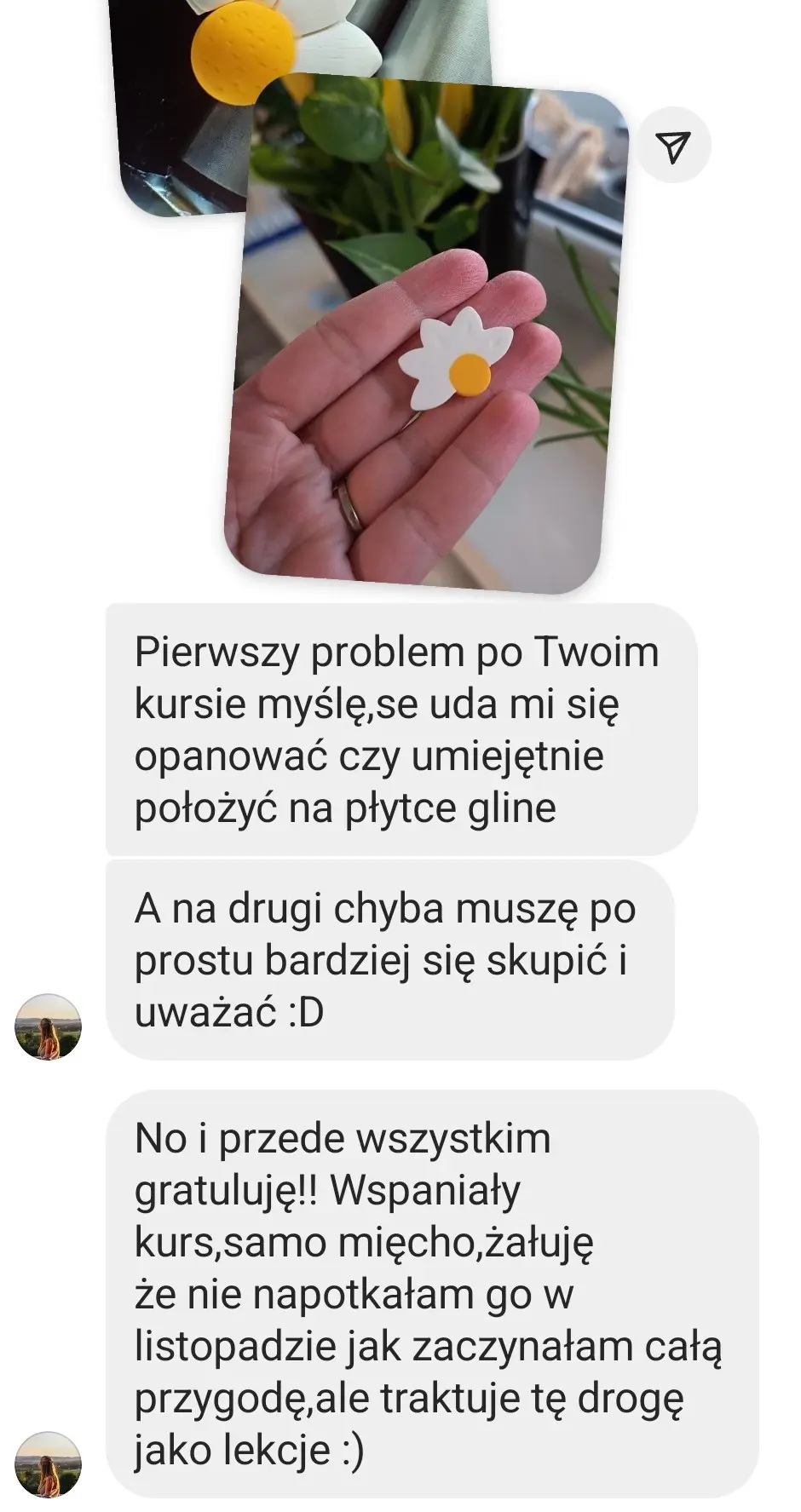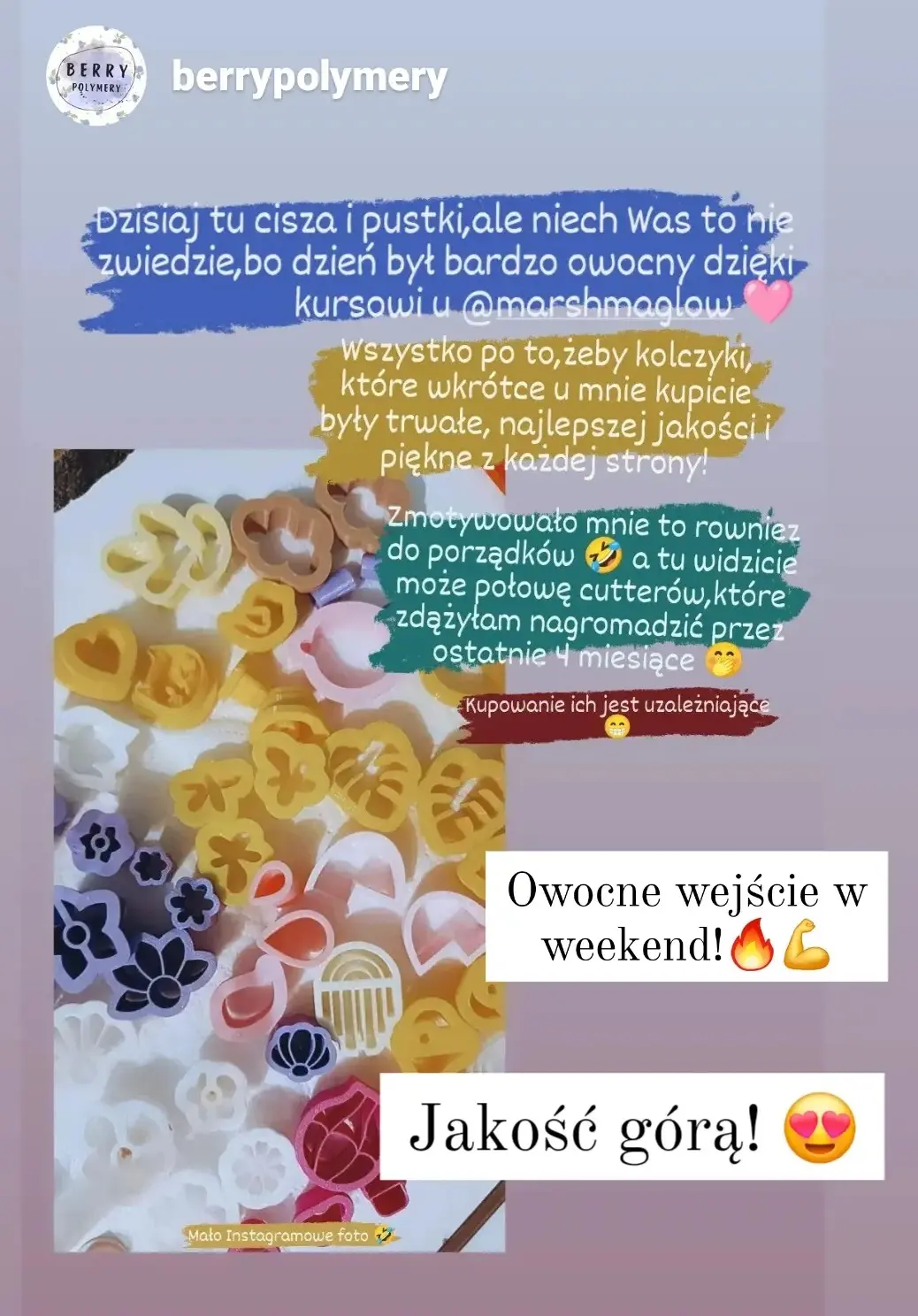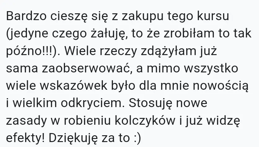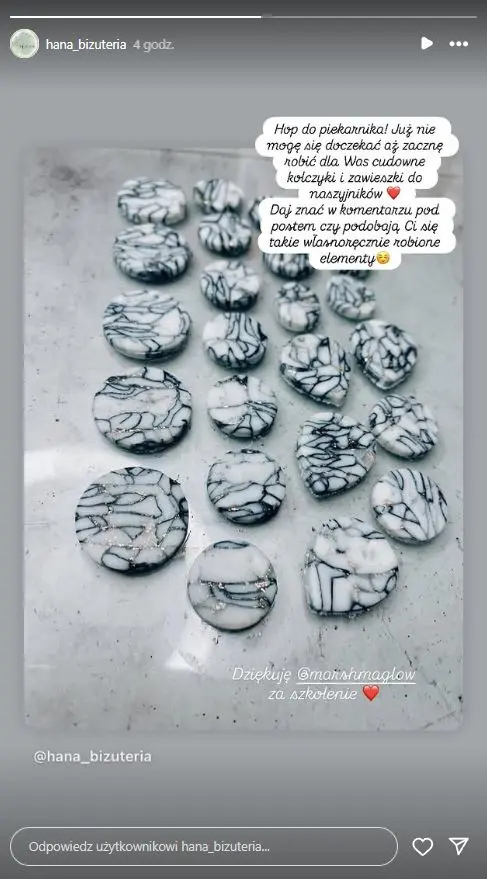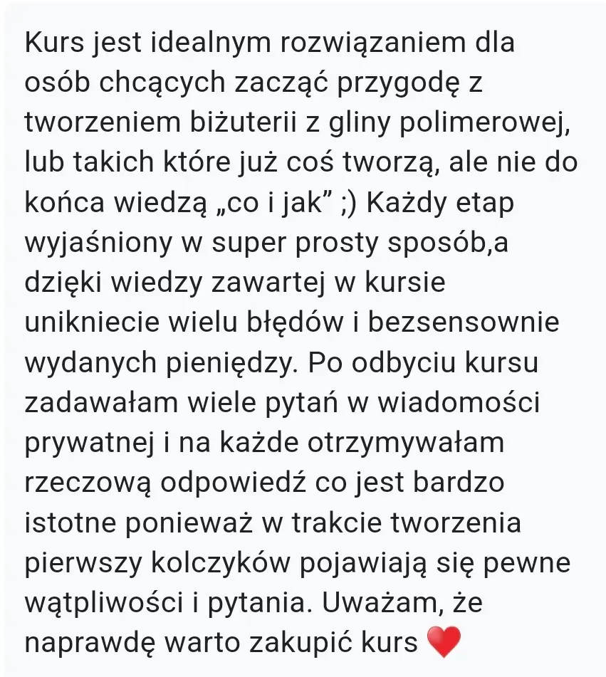 OpinieOpinie o kursie:Zobacz co mówi Dominika:Zobacz co mówi Małgosia:Strona Małgosi na Facebooku: Clayart By MM Zobacz co mówi AniaZobacz co mówi Magdalena:Zobacz co mówi Kasia:Strona Kasi na Facebooku: KATA Zobacz co mówi Paulina: Opinie foremek: Wasze realizacje z pomocą foremek od Marshmaglow: Opinie biżuterii: Przejdź do sklepu